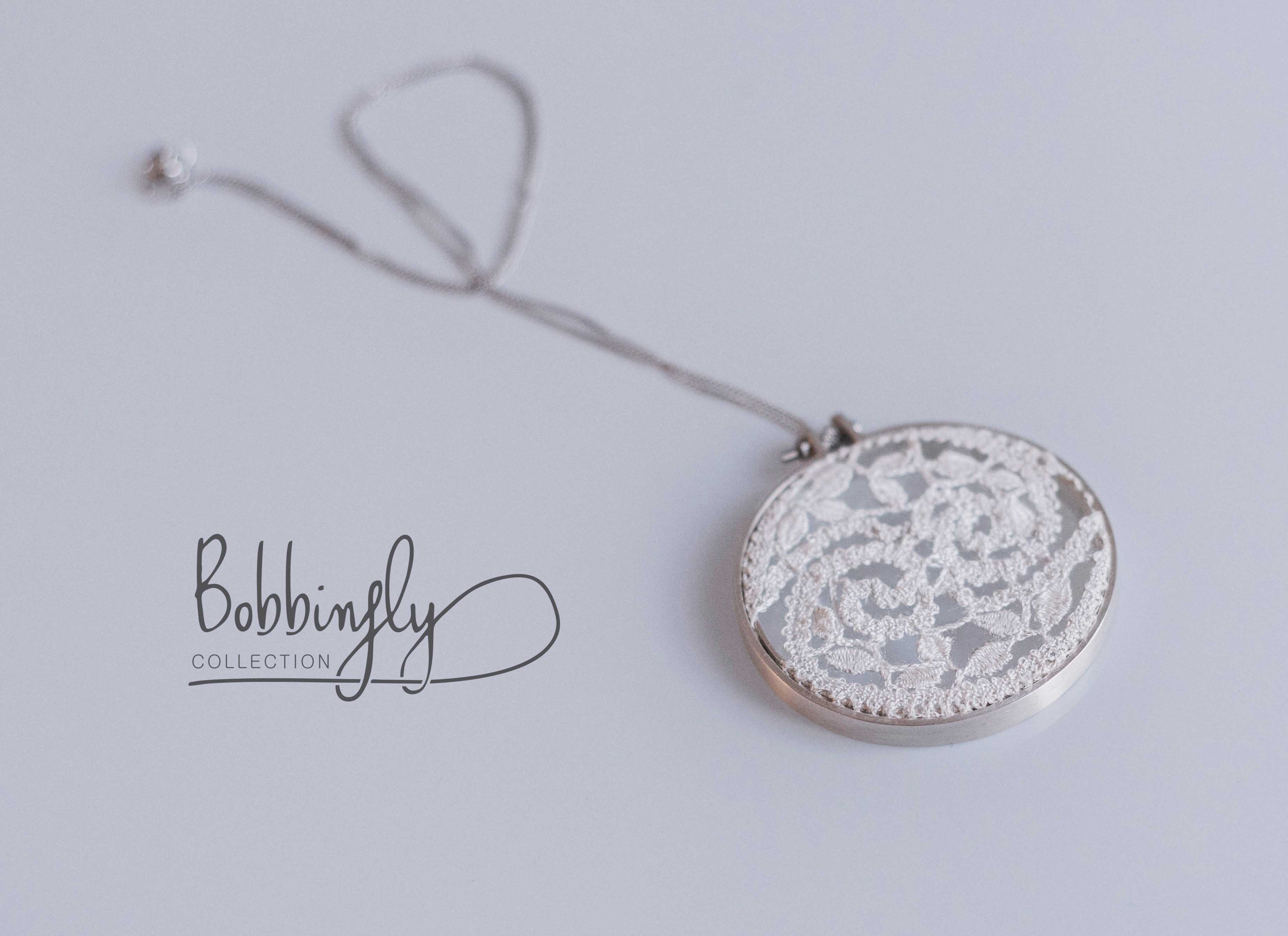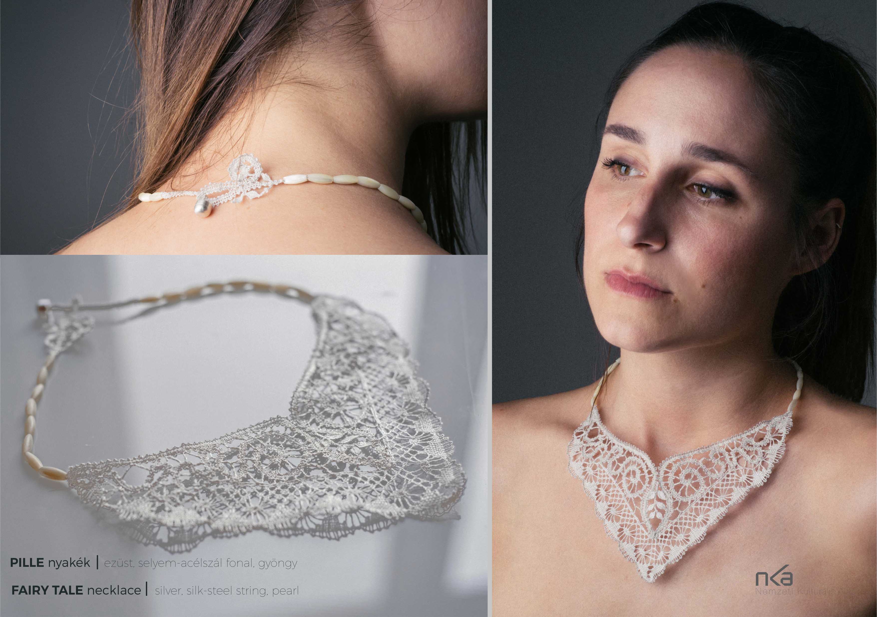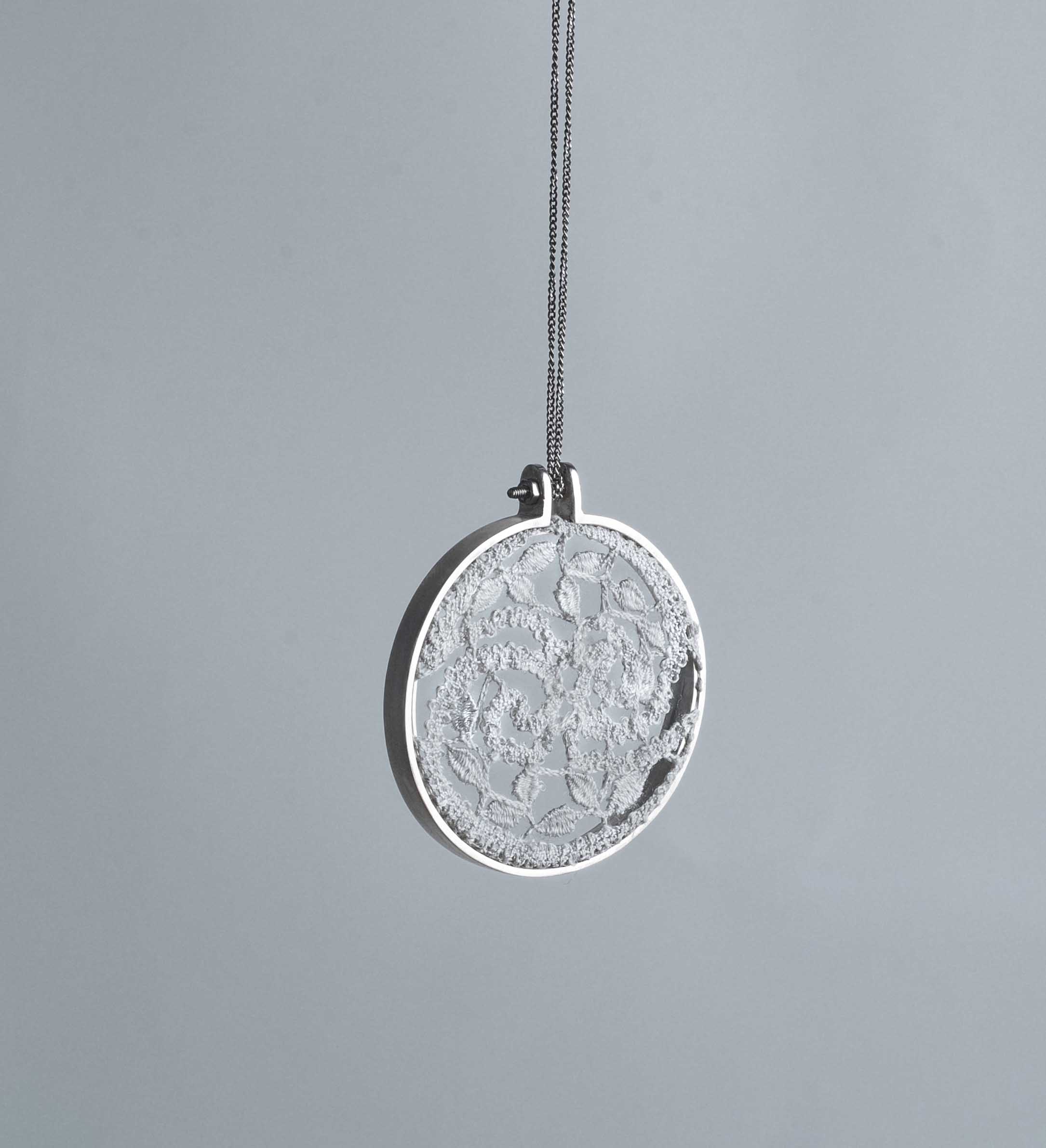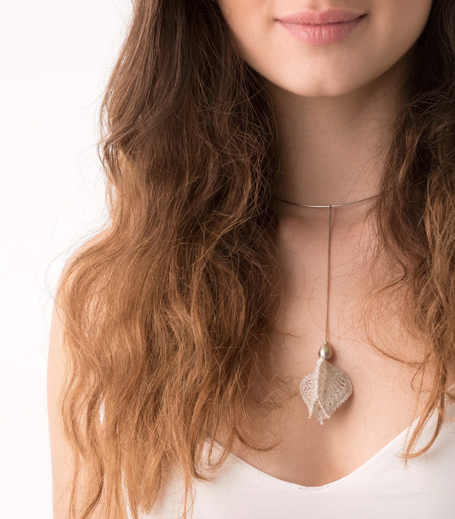 Silk and silver jewellery collection made with bobbinlace techniqe