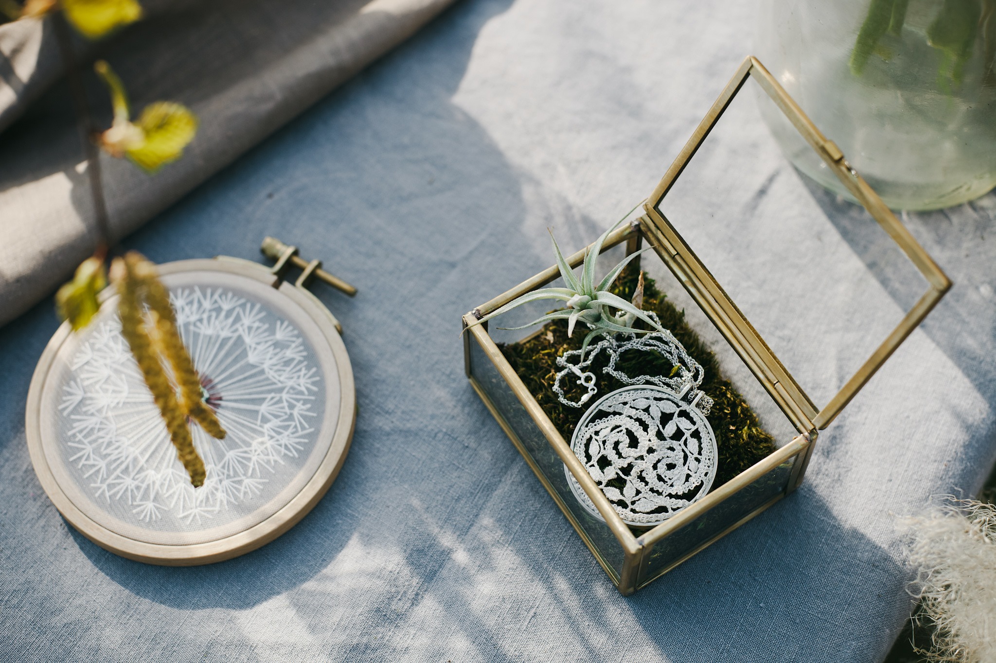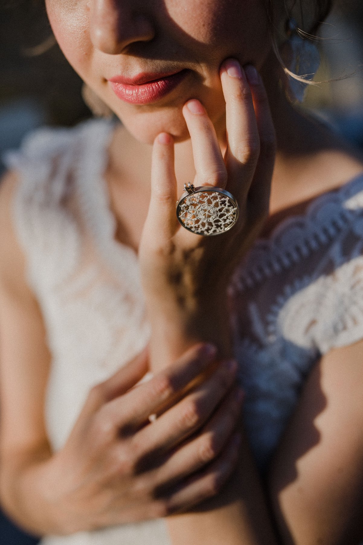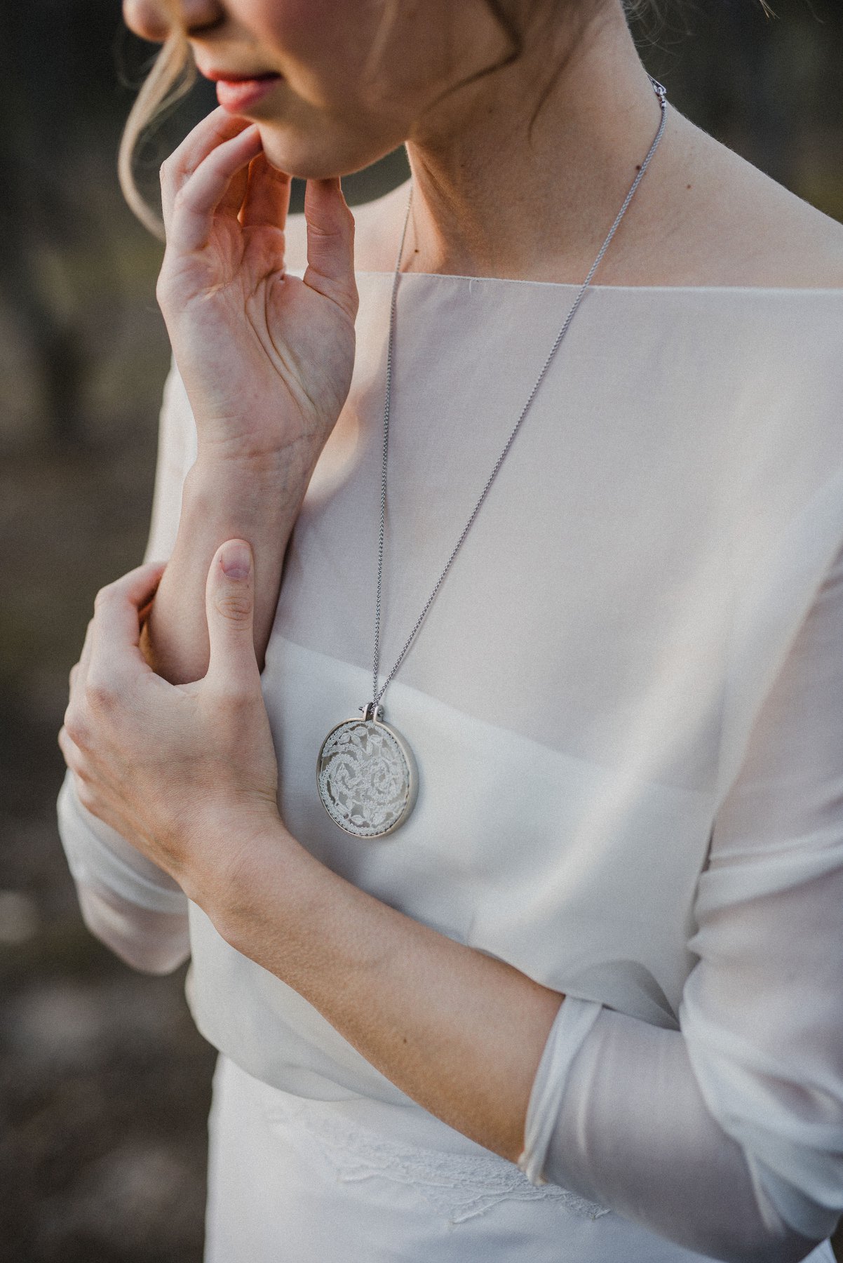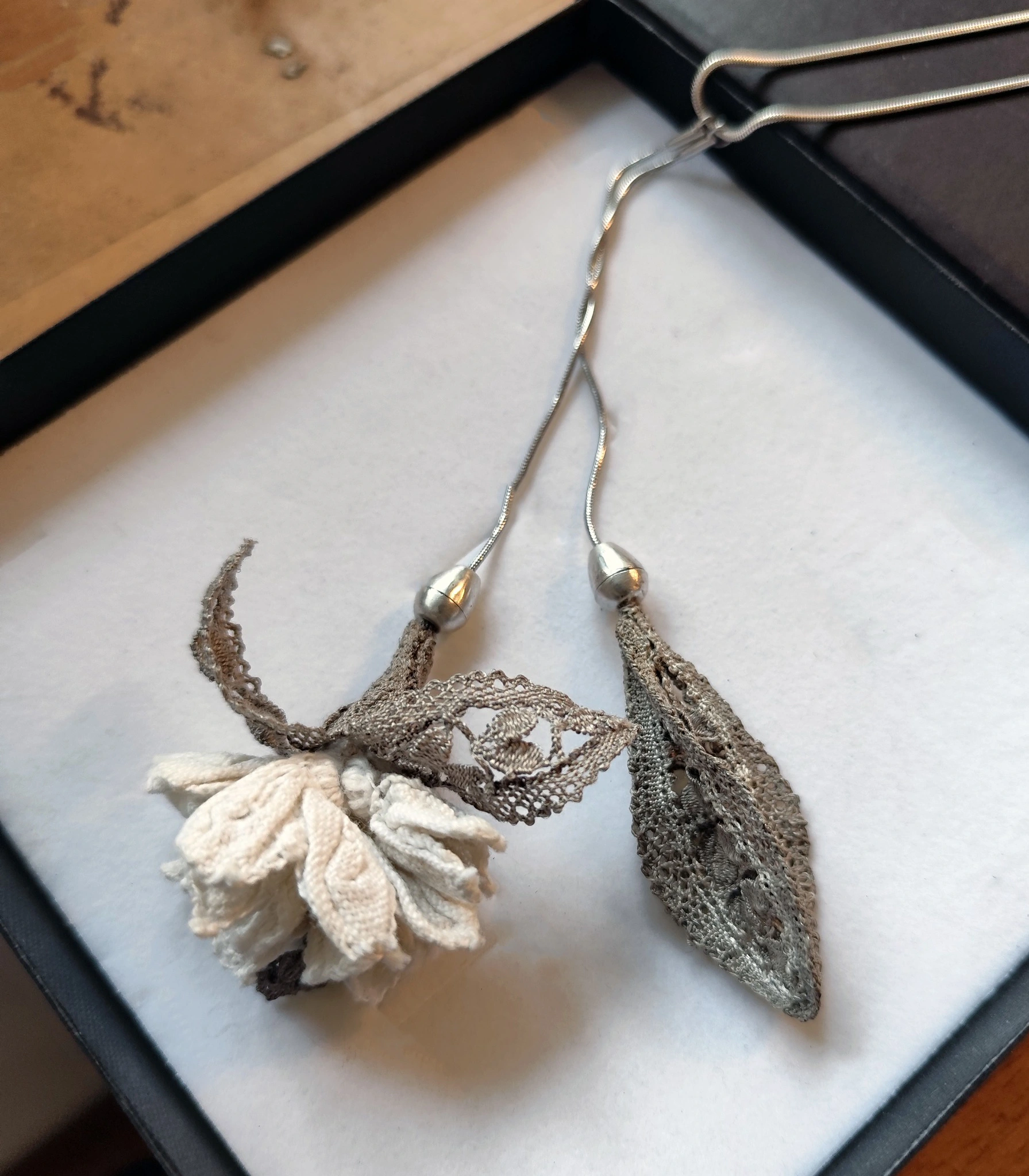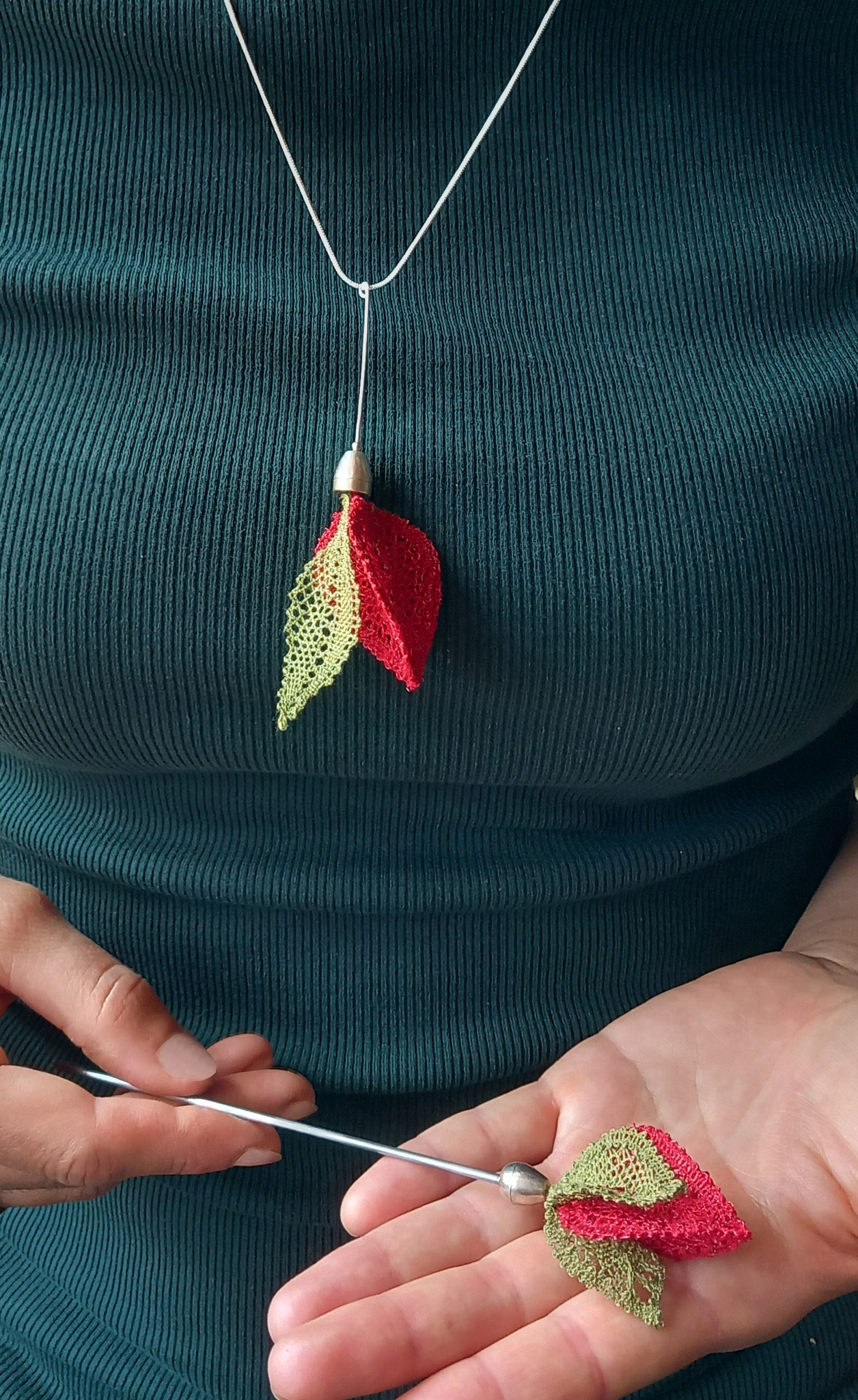 Silk and silver jewellery collection made with bobbinlace techniqe