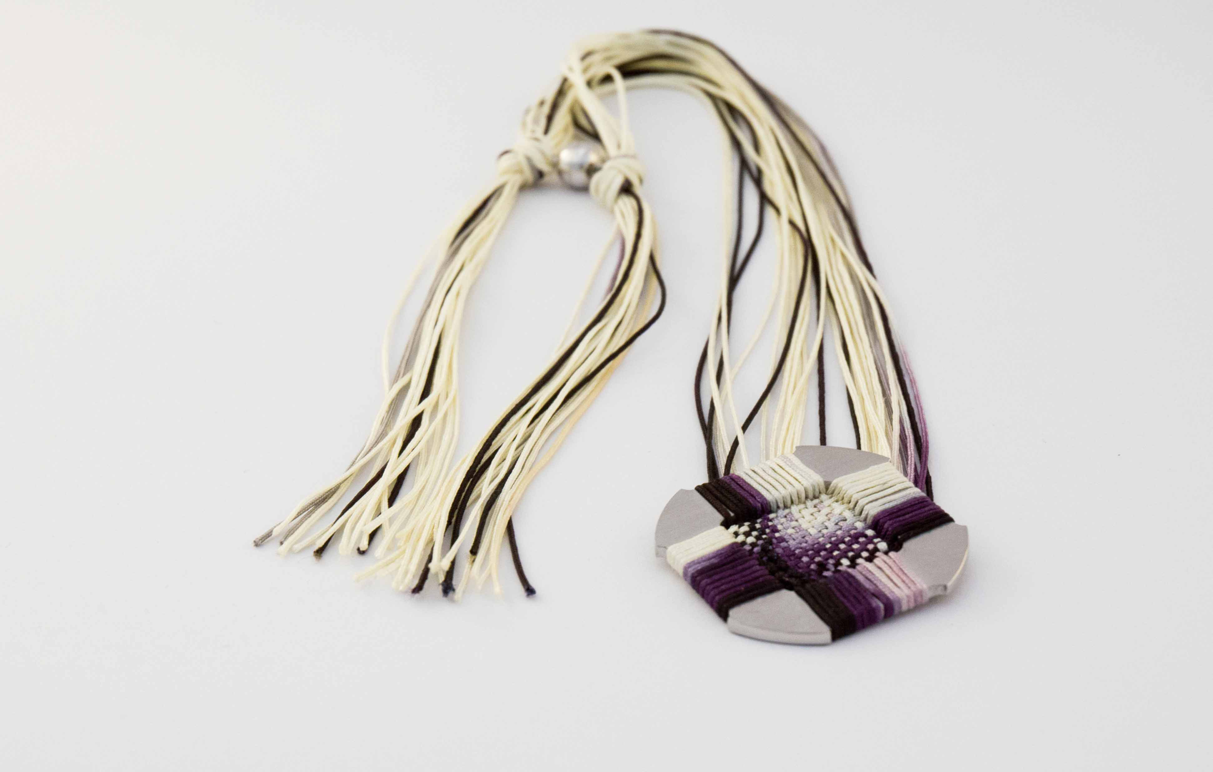 IKAT technique inspired woven pendant