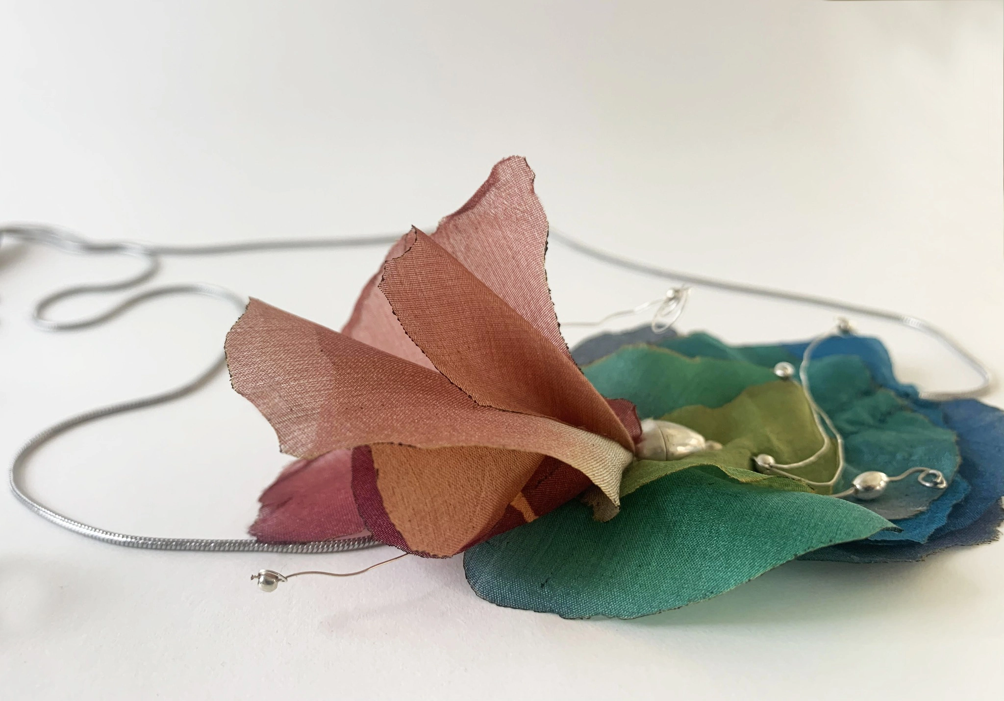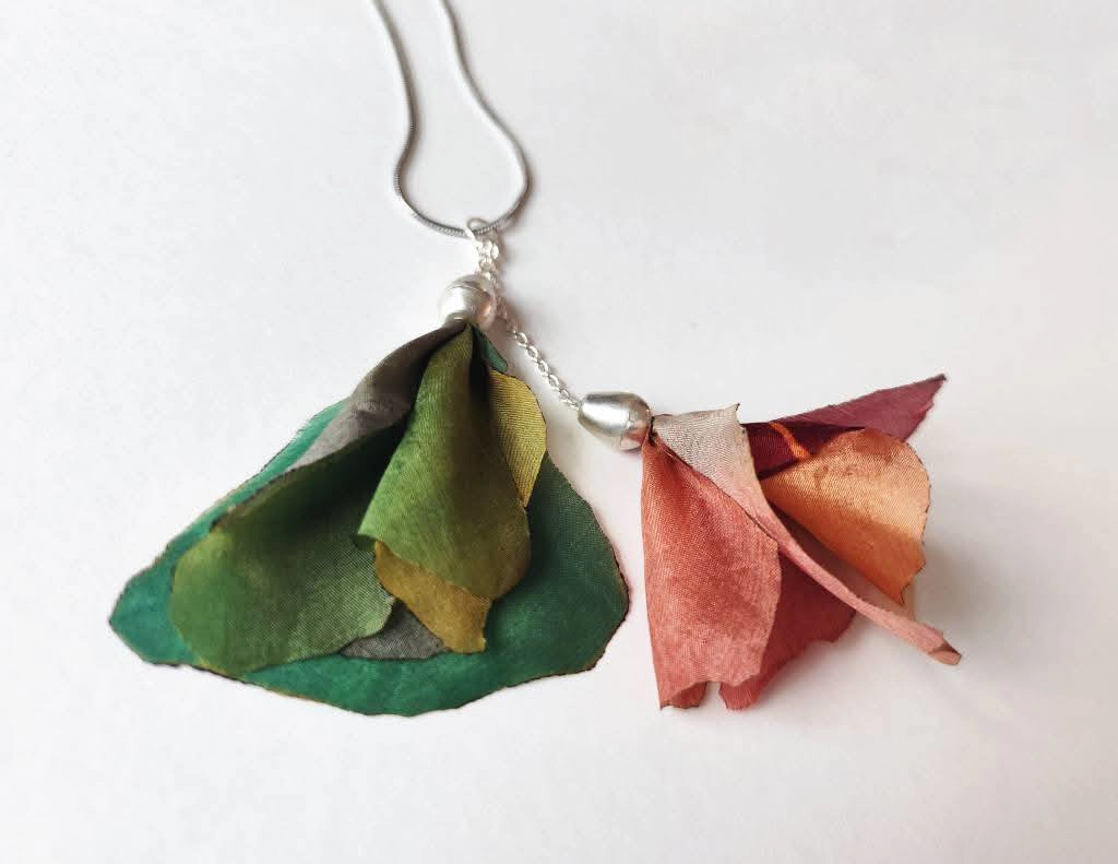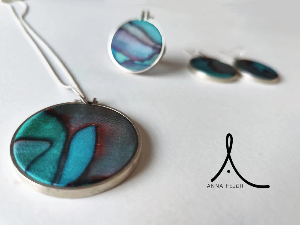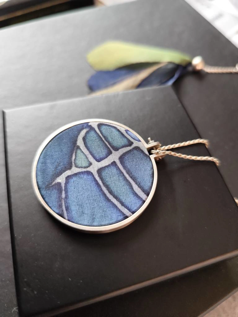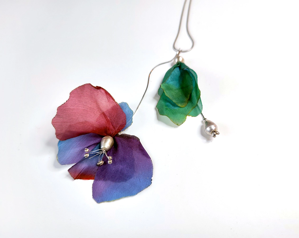 My jewelry series created using Rita Müller’s hand-painted silk, made for our joint exhibition in 2025.