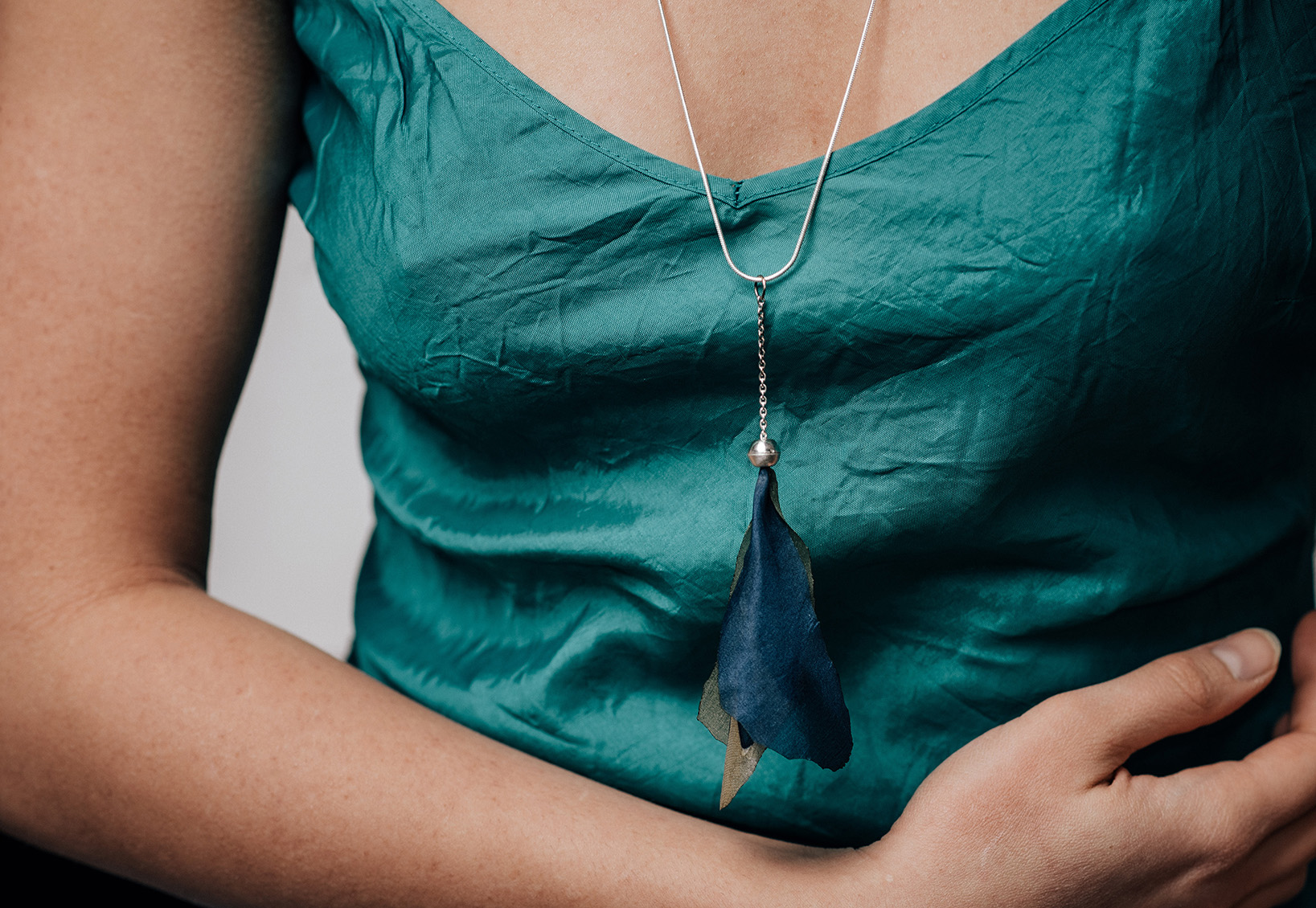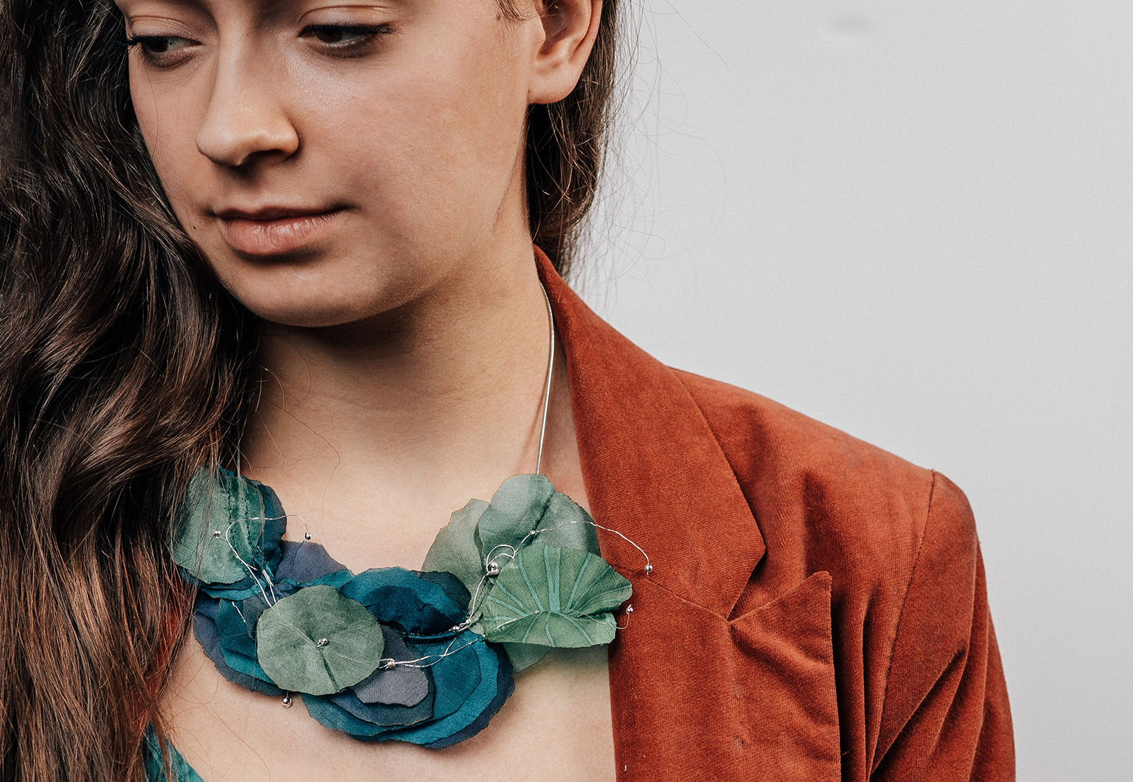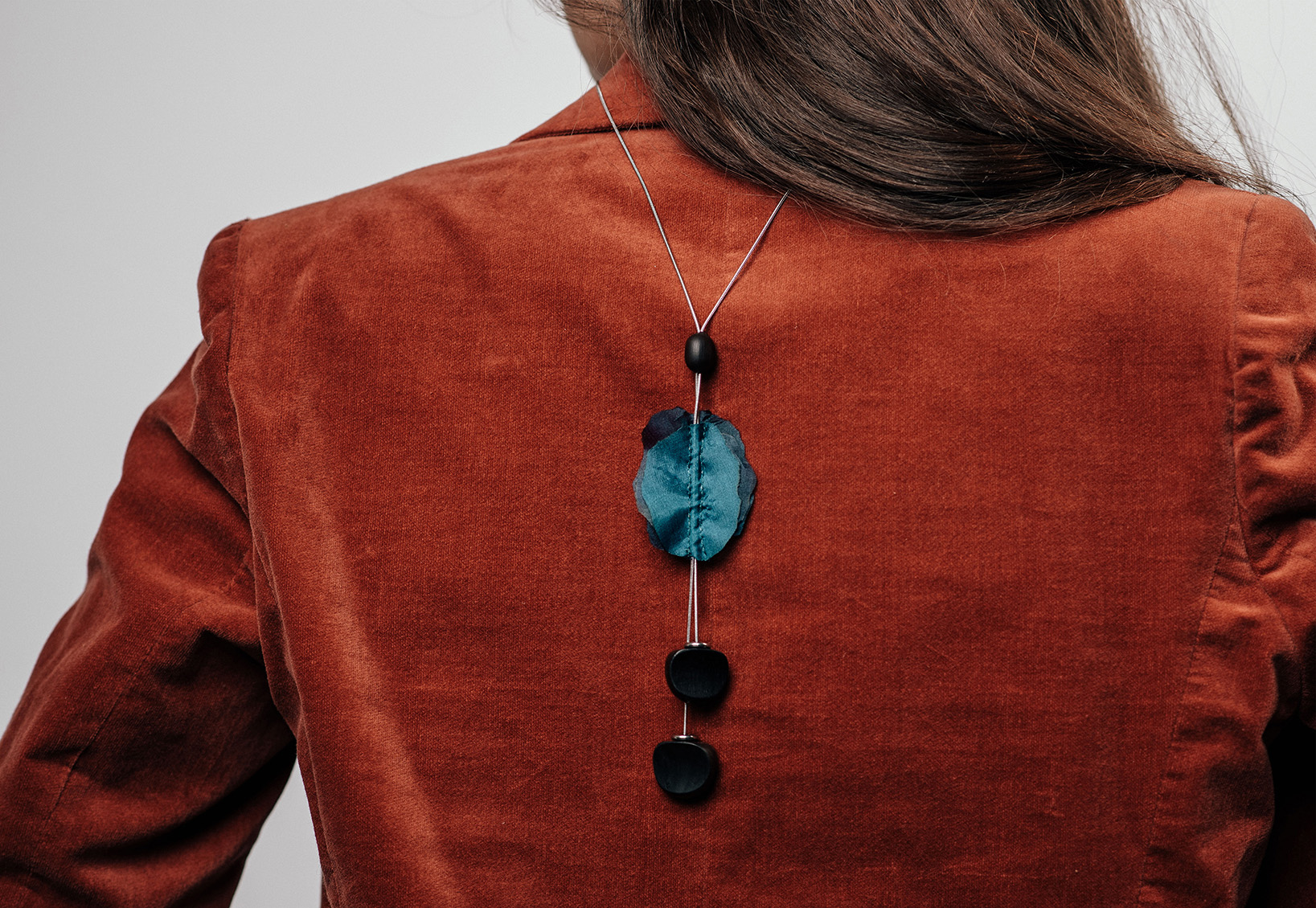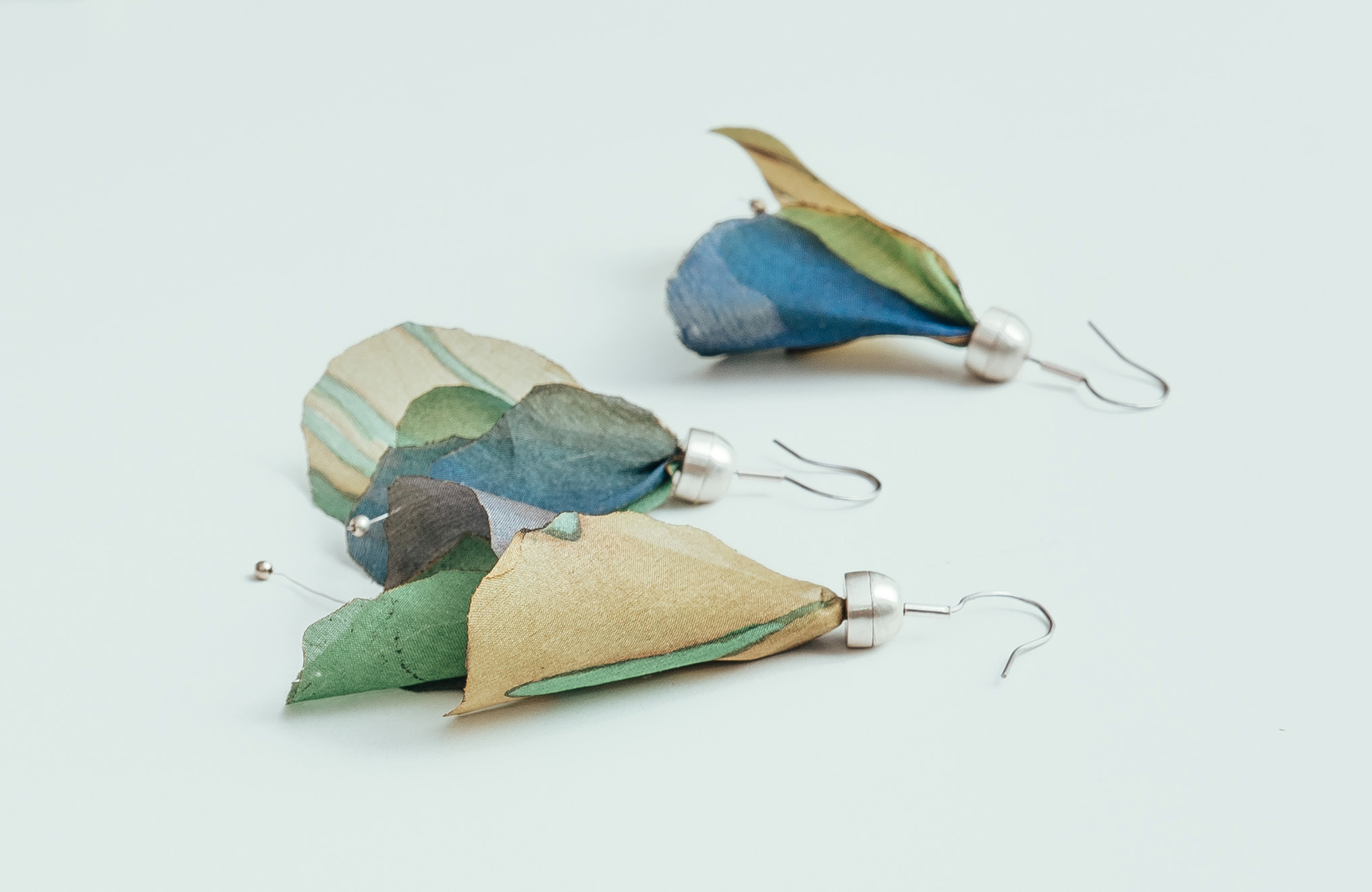My jewelry series created using Rita Müller’s hand-painted silk, made for our joint exhibition in 2025.