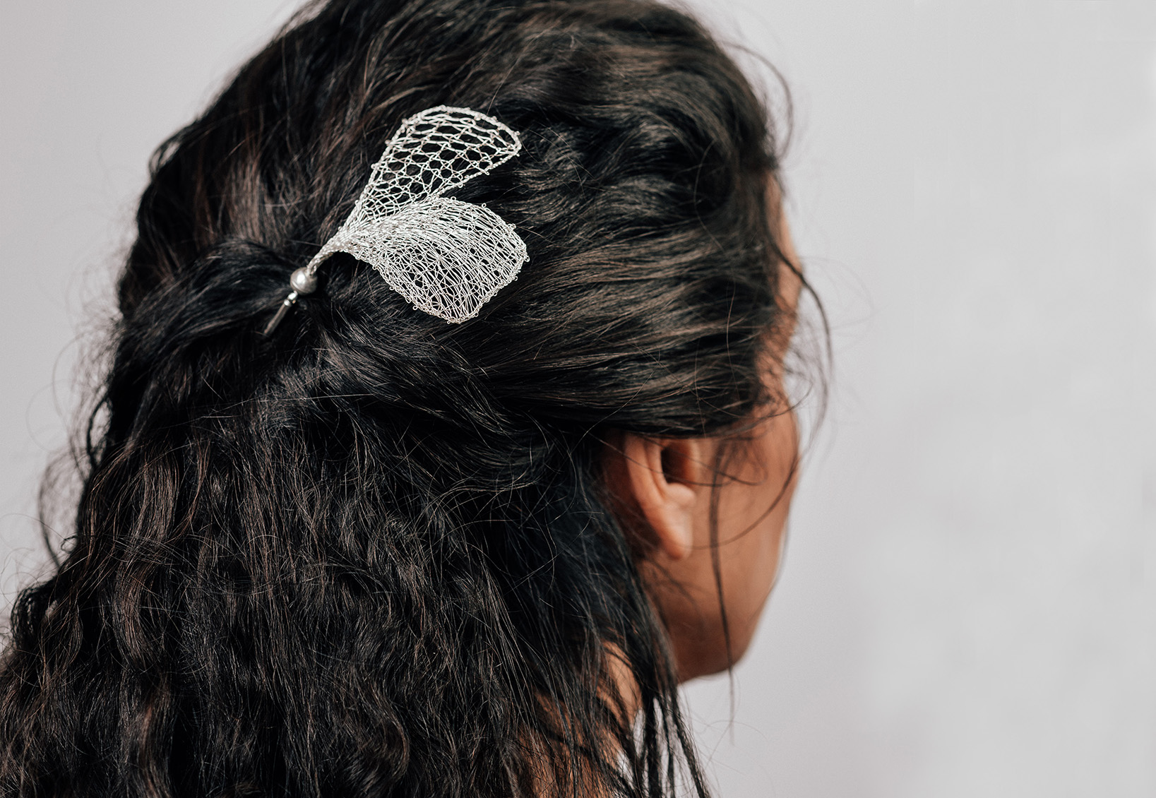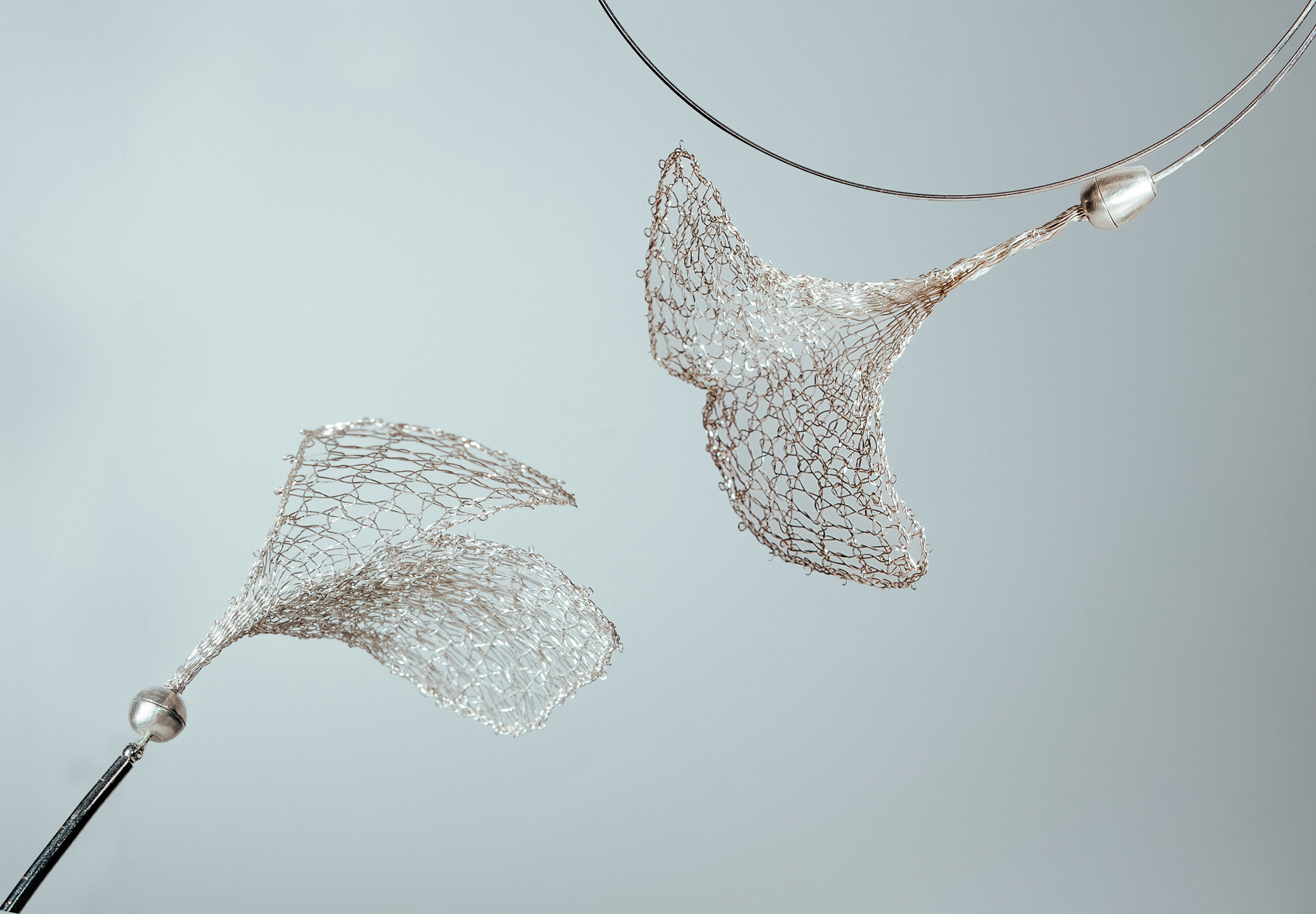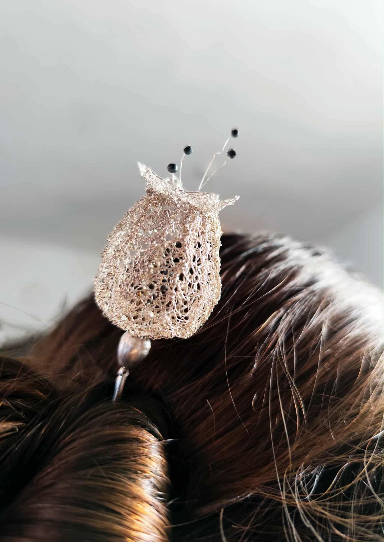Made of silver wire, with bobbin lace technique